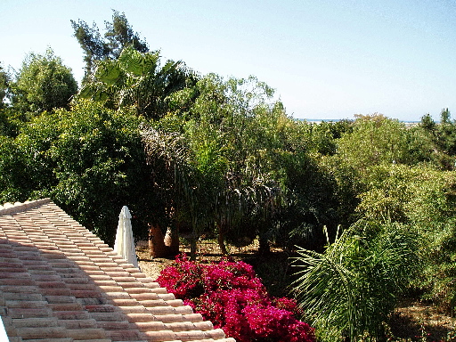 Casa Bela Sombra liegt mitten im Naturschutzgebiet Ria Formosa, auf einem 2000 m² großen Garten mit vorwiegend subtropischen und tropischen Pflanzen. Es liegt ruhig, an einem Pinienwald, ist rundum eingezäunt und durch Bepflanzung uneinsehbar.