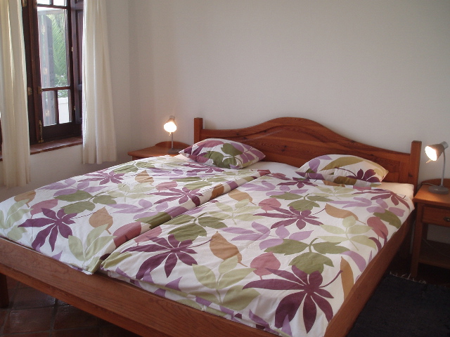 Casa Bela Sombra hat 3 Schlafzimmer, zwei davon mit Doppelbetten und eines mit zwei Einzelbetten.